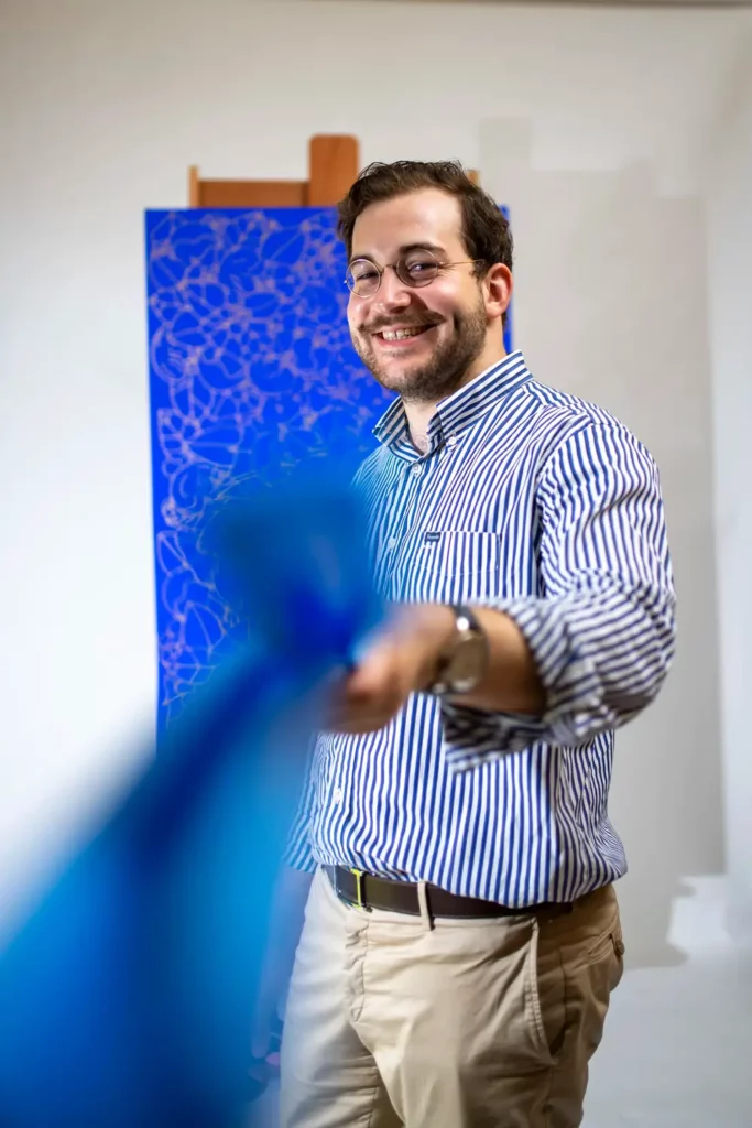 L’art de la table devient alors un nouveau terrain de jeu. Un défi stimulant : composer une harmonie visuelle sur une surface restreinte, circulaire, fonctionnelle. Ses collections explorent également d’autres objets décoratifs, comme les vides-poches ou les vases. Ces formes imposent de nouveaux codes. Car si peindre sur une toile plate est devenu naturel pour Pierre Guillonneau, apprivoiser les courbes d’un objet relève d’un tout autre exercice. Il faut positionner le motif avec justesse, composer avec les volumes, et respecter les contraintes de l’objet tout en conservant l’esthétique et l’émotion du dessin.